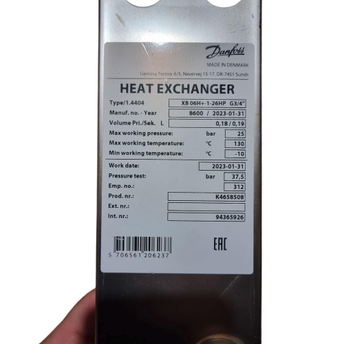 XB 06H+-1-26HP G3/4 Plate Heat Exchanger