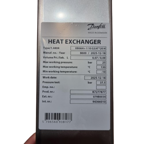 XB06H+-1 10 G3/4 *20 Plate Heat Exchanger